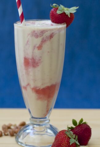 Peanut Butter Strawberry Swirl Milkshake with Peanut Milk