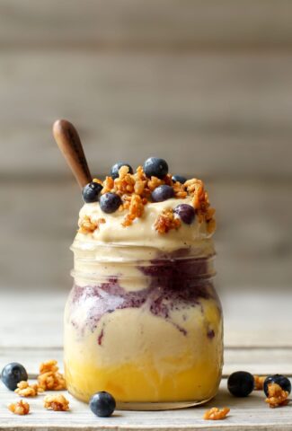 Mango Blueberry Nicecream Jar with Rice Crispy Clusters