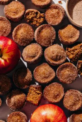Indulge in fluffy gluten-free baked apple cider donut holes rolled in sweet cinnamon sugar. This easy homemade recipe is full of warm spices, perfect for a healthier fall treat!