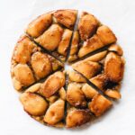 Sticky-sweet caramelized apples baked on top of a tender almond flour crust for a healthier take on Apple Tart Tatin. Think: apple pie in pizza form!