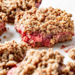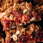 A sweet tangy mix of strawberries + raspberries cooked till jammy then layered between a buttery crust and golden crumble. Vegan, gluten-free, paleo option!