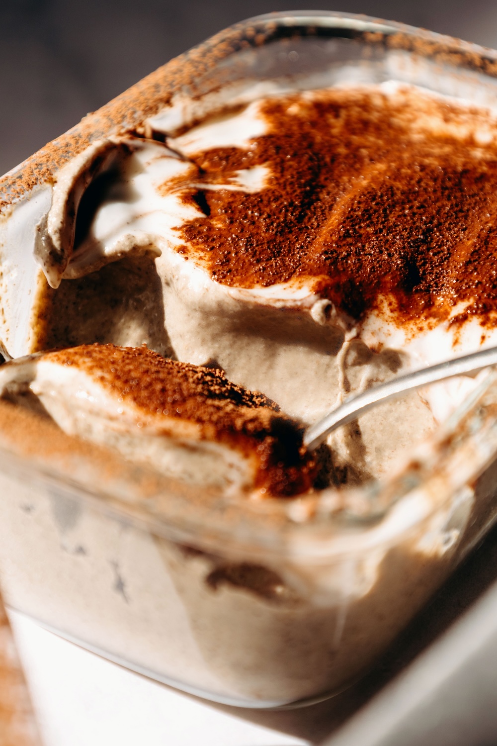 - Vanilla yogurt. This layer is sort of a stand in for the tradition mascarpone in tiramisu, I used a dairy-free vanilla yogurt so you have sweetness and some tang.