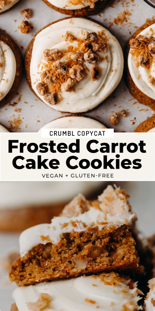 Love the frosted carrot cake cookies from Crumbl? Make your own copycat version at home with this easy vegan and gluten-free recipe!
