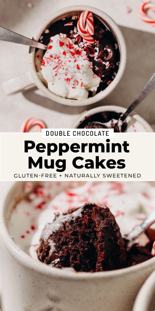 I am a strong believer that in the midst of cookie baking and cookie swaps and cookie houses, sometimes you just need a CAKE BREAK that’s ready in no time and doesn’t even require preheating the oven. This is that easy little chocolate escape recipe, but it still feels and tastes like a festive treat. The recipe as written makes two mug cakes, so it’s perfect to make for you and your person cuddled up on the couch in front of a holiday film. Or perhaps for you and an old friend to catch up over when you travel back home. Or you could make for your little ones and let them add the candy cane topping or sprinkles themselves. It’s the non-cookie Christmas recipe you need in your life.