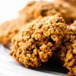Based on my Oil-Free Crispy Oatmeal Raisin Cookies, these cookies also get their crispy oatmeal edges from maple syrup instead of oil. Agave would work as well or even date or coconut syrup, but maple syrup tends to crystallize the best and the flavor mixes perfectly with all that spice.
