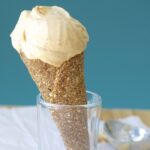SunButter and ice cream – two of my favorite food things in the whole wide world combined. Makes me very happy. Will make you very happy. Whether you construct this entire cone situation or not, at least try this frozen creamy blender-made goodness.