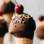- Be very patient with the ice cream scoop freezing step. Overnight is honestly ideal if you have the time, but you don’t want to lose a scoop into the chocolate. The ice cream needs to be totally solid and stuck to that cone.