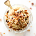 See, my brain went straight to cookie dough ice cream, but cookie dough bits in creamy oatmeal??? Oh, goodness. This sounds so amazing! You could have it for breakfast or dessert! I love that you used cashew butter in the oats! What a great idea…I bet that makes it extra creamy and delicious. I just watched the video and now I’m totally craving a bowl of this!