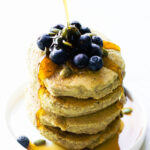 I LOVE these pancakes. I made a ton, and they’re super good warmed up again for a few days. The frozen blueberries didn’t work super well for me- the pancakes got kind of mushy. But with the fresh they were absolutely perfect!!