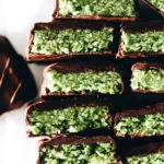 Matcha and coconut combine to create the gorgeous green inside, and then we hide all of that inside a silky dark chocolate coating. If you’ve never tried matcha with chocolate I highly recommend. And I highly recommend you start with THESE bars.