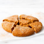 A soft-baked, cinnamon sugar topped snickerdoodle cookie with pumpkin added in for extra fall flair. This vegan, gluten-free, single cookie recipe is ready for warm-from-the-oven devouring in no time!