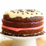 This small batch chocolate cake is so RICH and CHOCOLATEY, with a fluffy gluten-free texture and fruit-dyed pink vegan buttercream. Perfect for a sweet Valentine’s Day treat, or any other occasion!