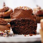The best healthy chocolate cupcakes that are moist, fluffy, and rich but made without eggs, dairy, gluten, or sugar! This untraditional recipe uses medjool dates, oat flour, almond butter, and other wholesome ingredients to create the perfect cupcake for kids that adults will love too. The updated version features a more moist texture (oil-free option still available!) and improved vegan blender frosting, making them even more delicious!